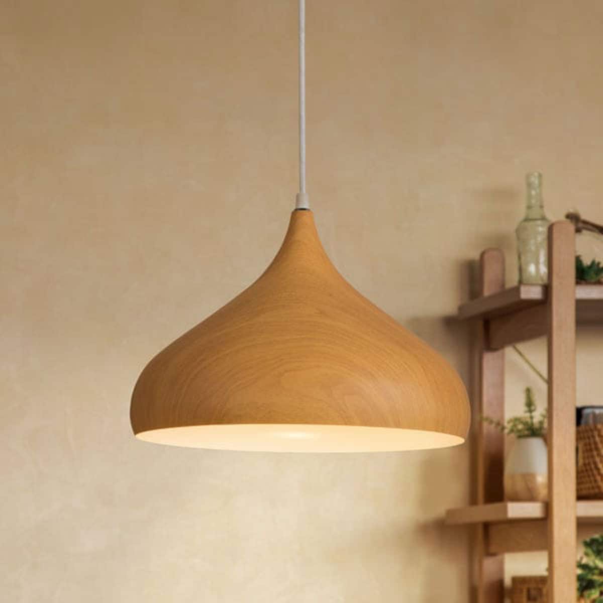 この2点からなるべく圧迫感が出ないシンプルなナチュラルウッド系のペンダントライトをさがしていました。